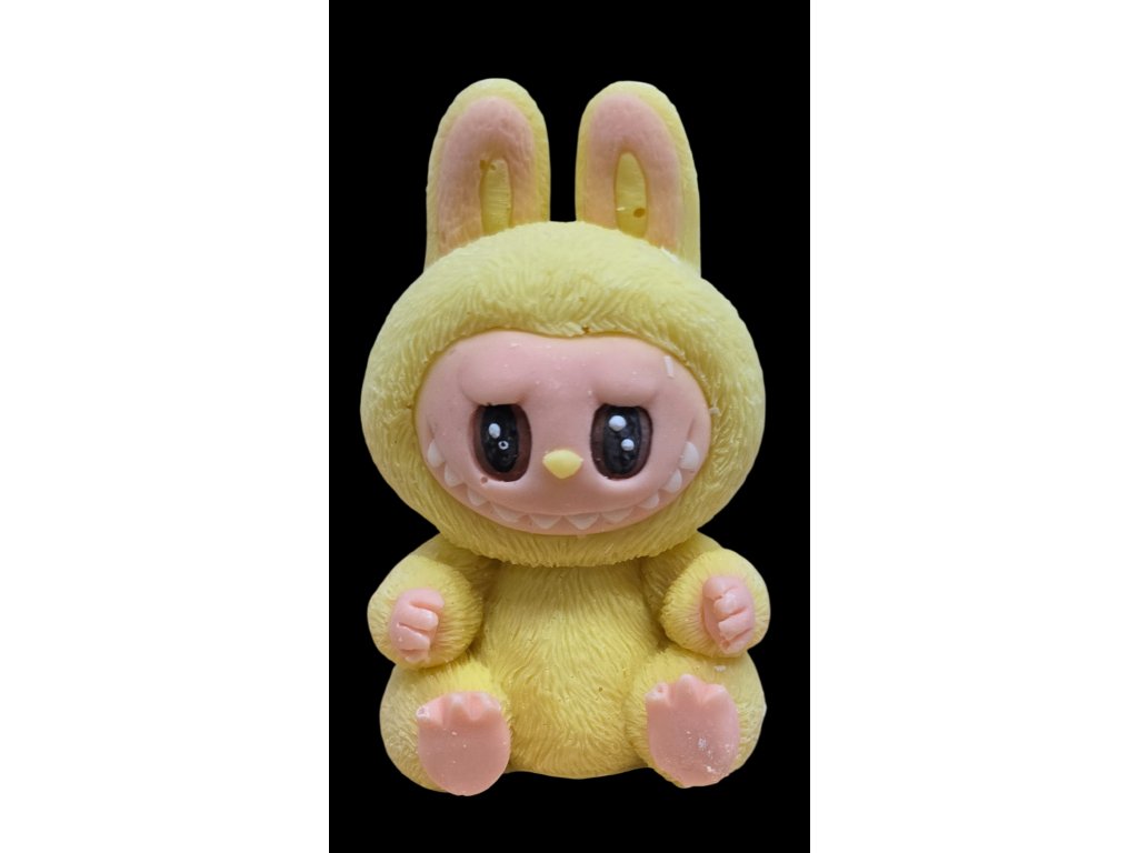 Labubu žlutý – jedlá čokoládová figurka na dort, 3D (ruční výroba)