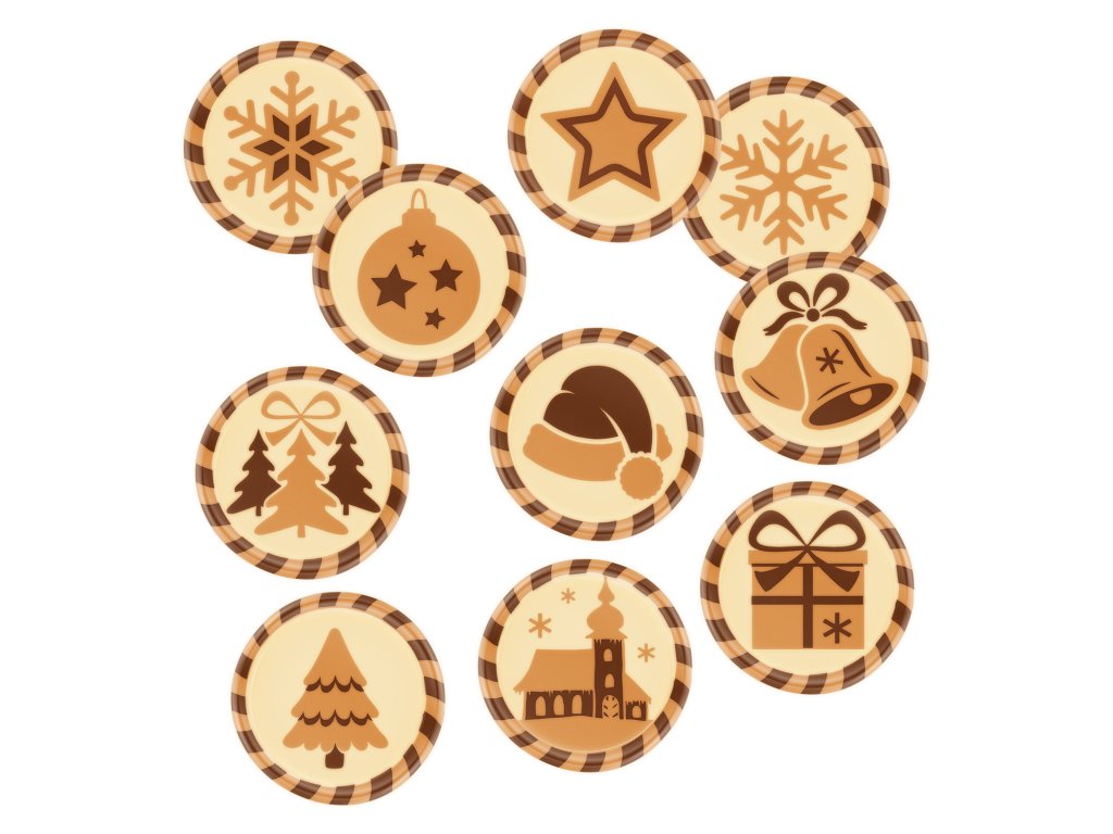 Čokoládová kolečka Vánoce – bílá čokoláda Ø 30 mm - 10 ks