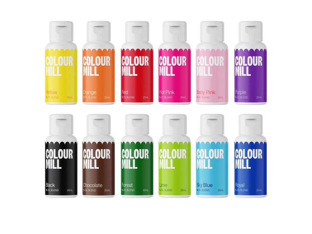 Tajemství úspěchu Colour Mill Oil Blend spočívá v absenci vody. Všechny vodní složky byly nahrazeny speciálními oleji vhodnými pro cukrářské využití. Zatímco voda se s tukem (v másle, vejcích či čokoládě) přirozeně odpuzuje, barvy Colour Mill se s nimi „přátelí“ a rovnoměrně se rozptýlí v celé hmotě. Díky speciálnímu mikro-mlecímu procesu jsou barvy hladké, netvoří skvrny ani šmouhy.