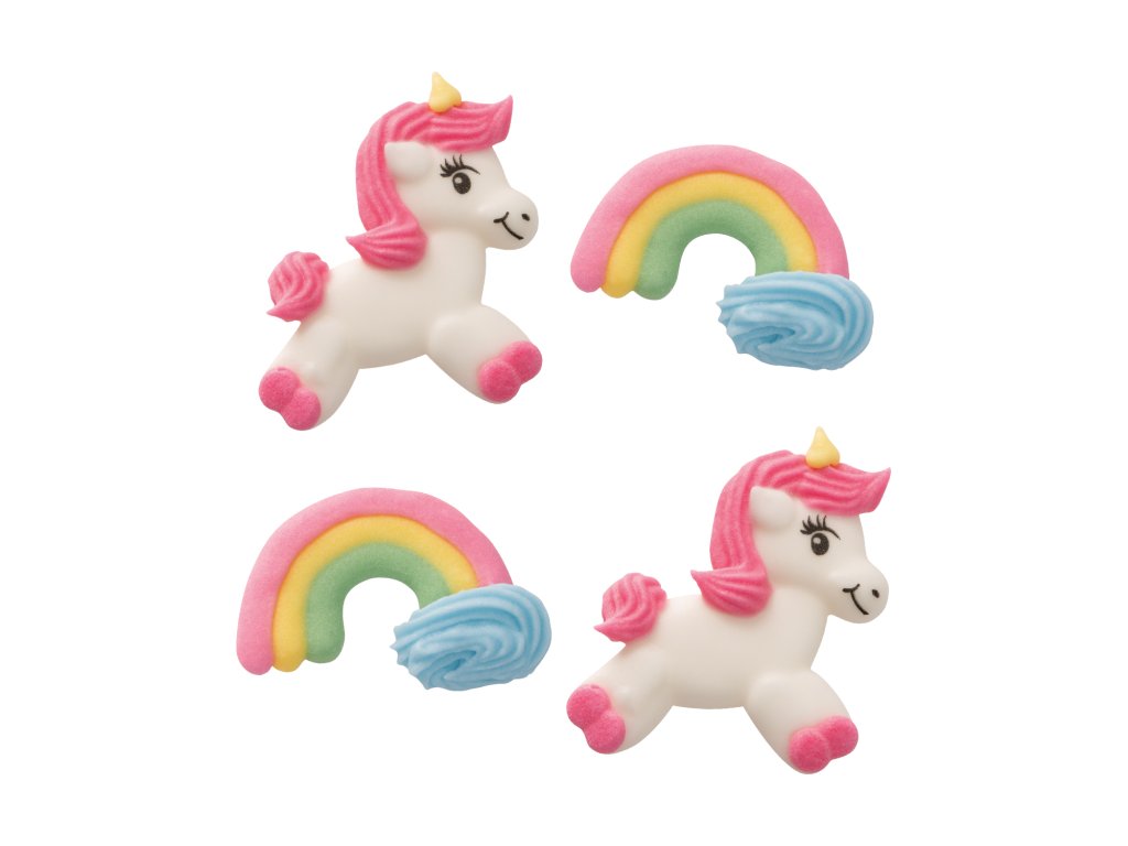 Cukrová dekorace – jednorožec + duha | 1 sada | plochá Günthart