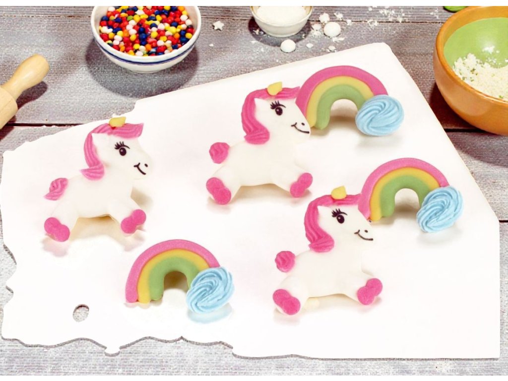 Když chceš dodat dezertu trochu kouzelného světa, jednorožci nikdy nezklamou. Tahle roztomilá cukrová sada přináší jemného jednorožce s růžovou hřívou a barevnou duhou, která rozsvítí každý kousek dezertu – od cupcakes, perníčků, narozeninového dortíku až po sweet bar.