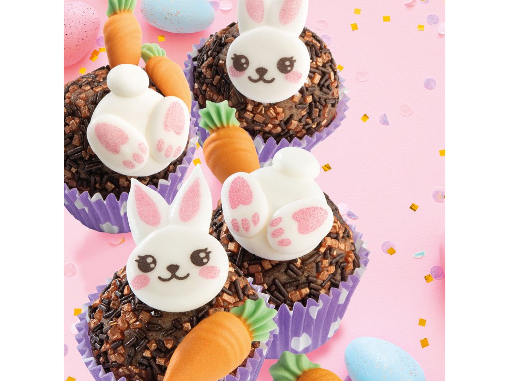 Hledáte originální způsob, jak ozdobit velikonoční beránek nebo jarní cupcaky? Tato sada 10 cukrových figurek přináší vše, co k jaru patří. Největším hitem jsou zaječí tlapky, které v kombinaci s krémem vytvoří dojem zajíčka skákajícího přímo do vašeho dezertu. Celou sadu doplňují klasické figurky zajíčků a nezbytné mrkvičky pro dokonalý vizuální výsledek.