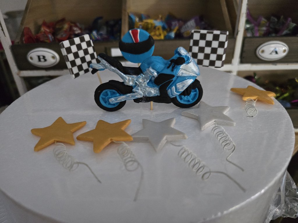 Dodejte svému dortu jedinečný styl s touto cukrovou sadou s motivem motorky! 🏁