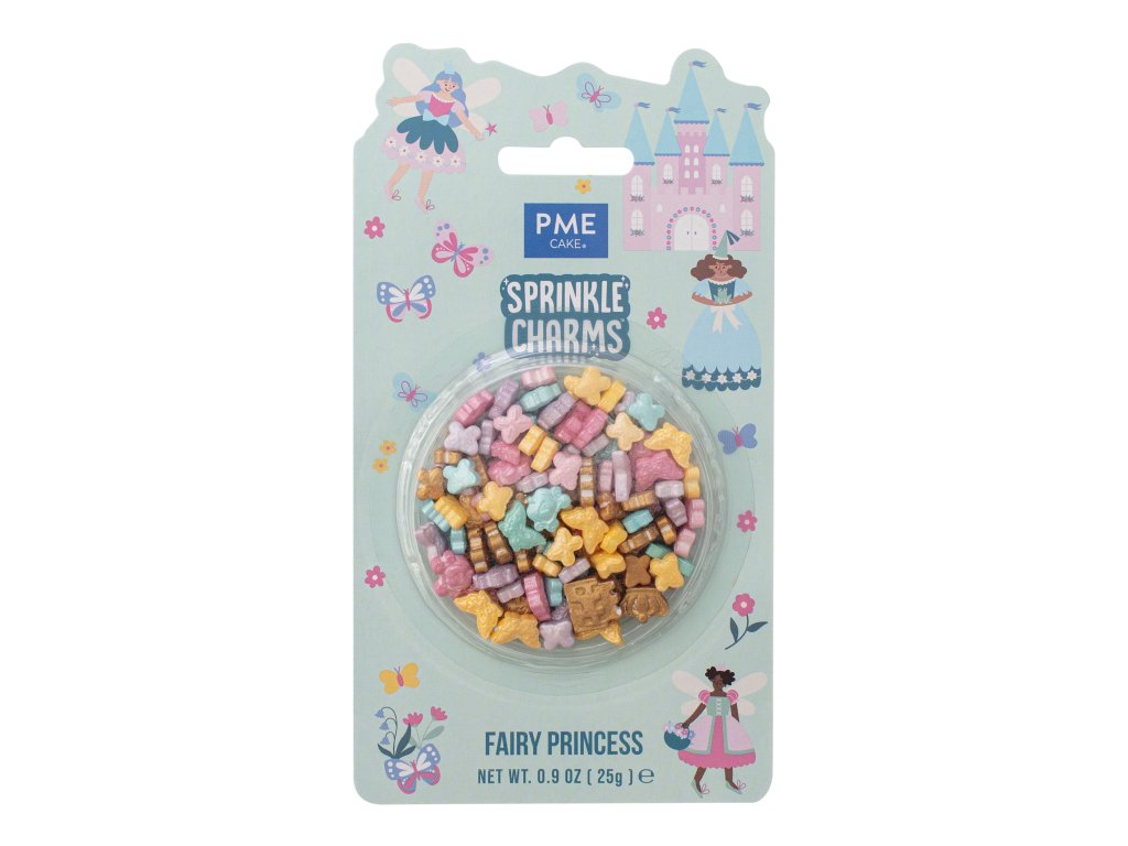 PME Sprinkle Charms z kolekce Fairy Princess jsou navrženy tak, aby dodaly vašim dezertům nádech luxusu a fantazie. Mix obsahuje detailně propracované tvary v pastelových a zlatavých odstínech, které díky svému 3D provedení na dortu či cupcaku krásně vystupují do prostoru. Je to ideální řešení pro profesionálně vypadající zdobení bez nutnosti zdlouhavého modelování.