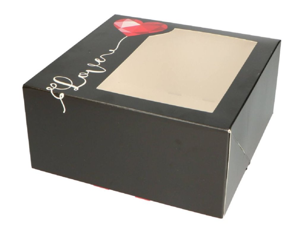 Dárková krabice na dort s okénkem Love (19x19x9 cm)