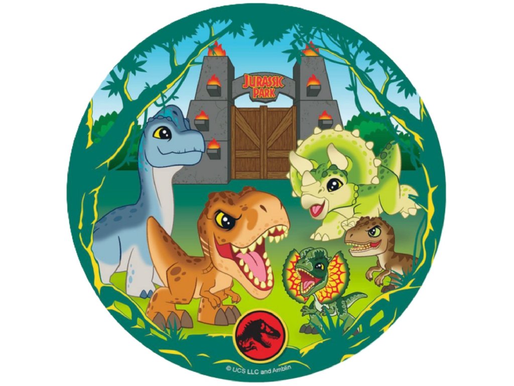 Připravte pro svého malého paleontologa nezapomenutelnou oslavu s tímto fondánovým listem o průměru 20 cm. Motiv z oblíbeného filmu Jurský svět (Jurassic World) s ikonickým logem tyranosaura dodá každému dortu to správné napětí a styl. Díky kvalitě cukrového listu bude výsledek vypadat jako od profesionálního cukráře.