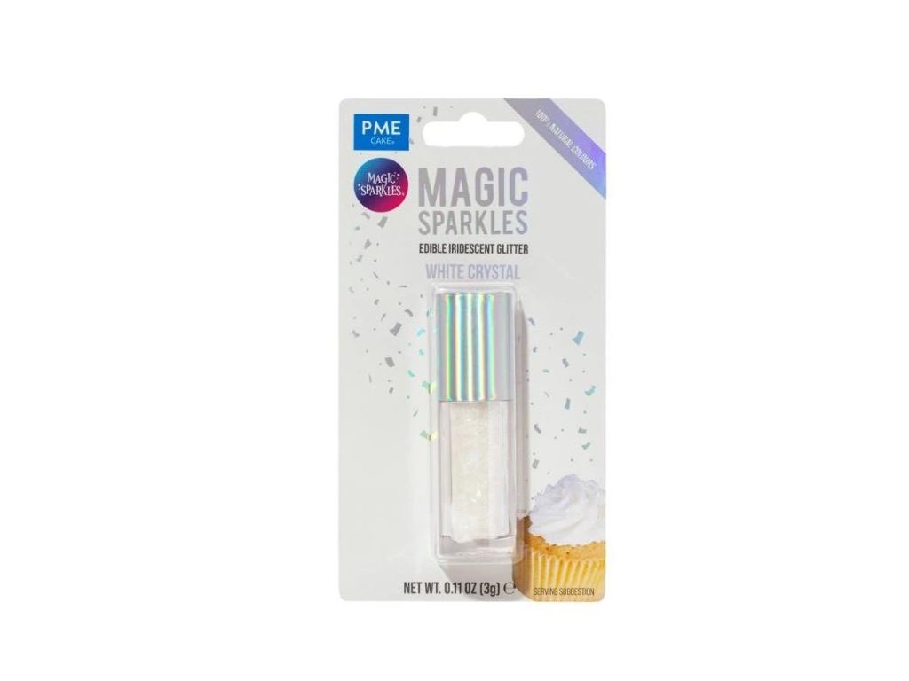 Bílé jedlé glitry od renomované značky PME (odstín White Crystal) jsou navrženy pro ty nejnáročnější cukrářské projekty. Na rozdíl od jemného perleťového prachu tvoří tyto glitry drobné krystalky, které na povrchu dezertů vytvářejí výraznou strukturu a odrážejí světlo ze všech úhlů.