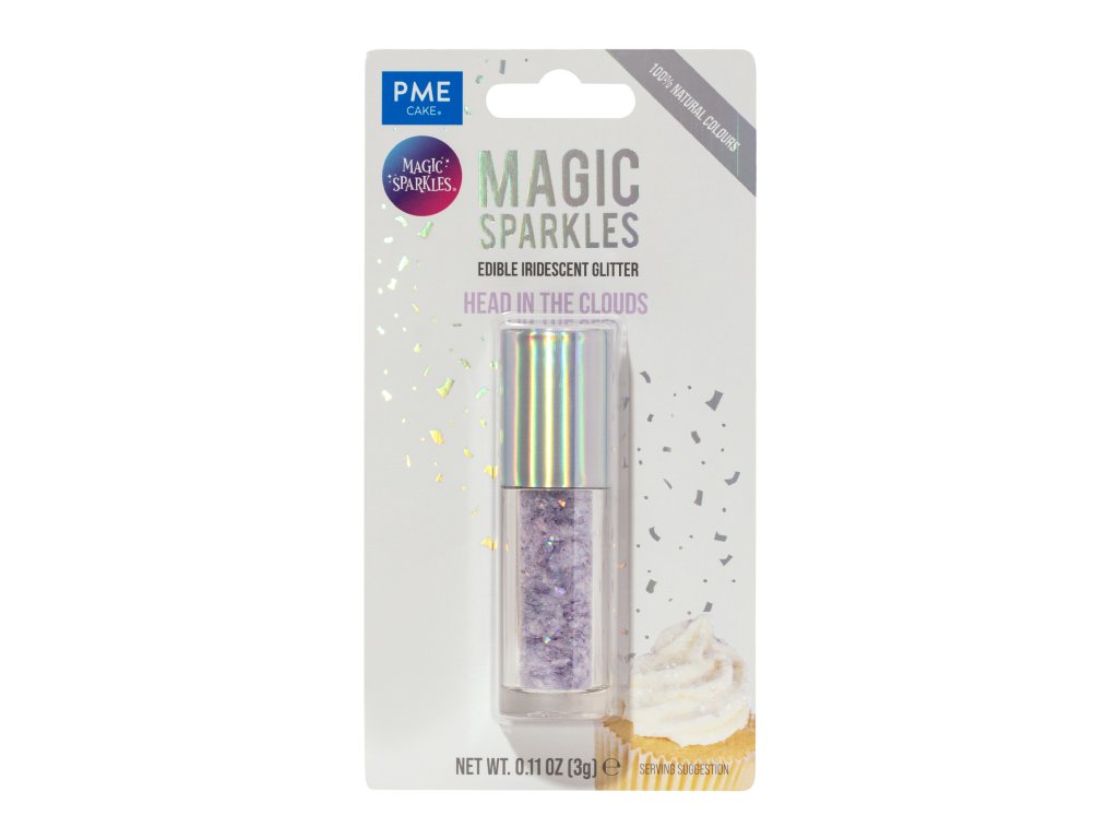 Kouzelné třpytky (Magic Sparkles) v edici S hlavou v oblacích (Head in the Clouds) jsou speciálně vyvinuté jedlé vločky, které na povrchu vašich sladkostí vytvářejí dojem nadýchaného nebe. Tato barevná směs kombinuje jemné nebeské tóny, které odrážejí světlo a dodávají každému dezertu nádech lehkosti a čistoty.