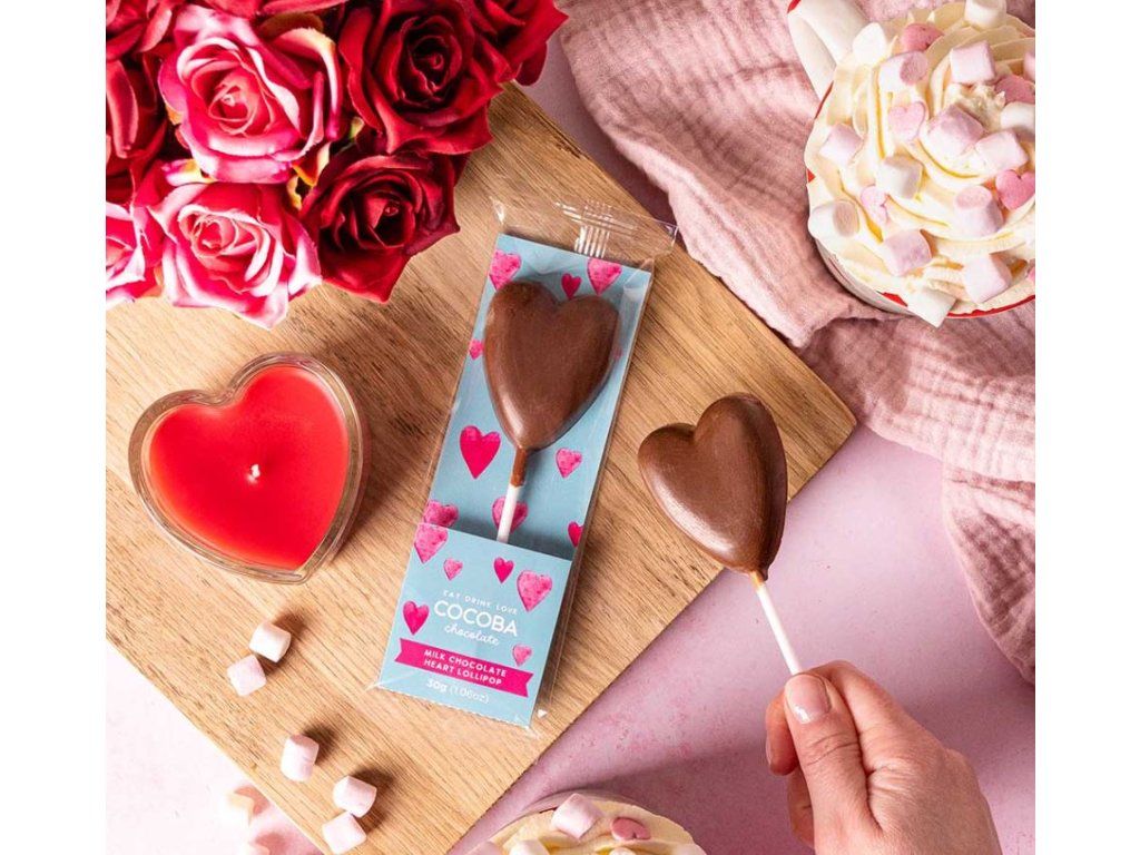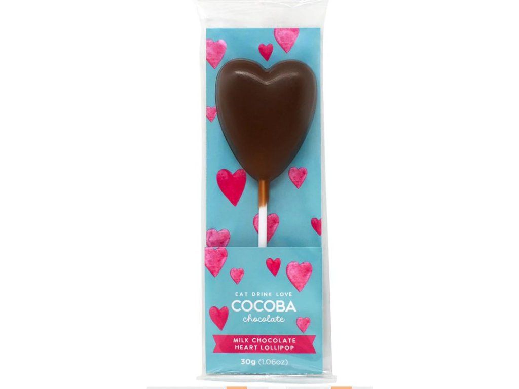 Lízátko z mléčné čokolády ve tvaru srdce – Cocoba