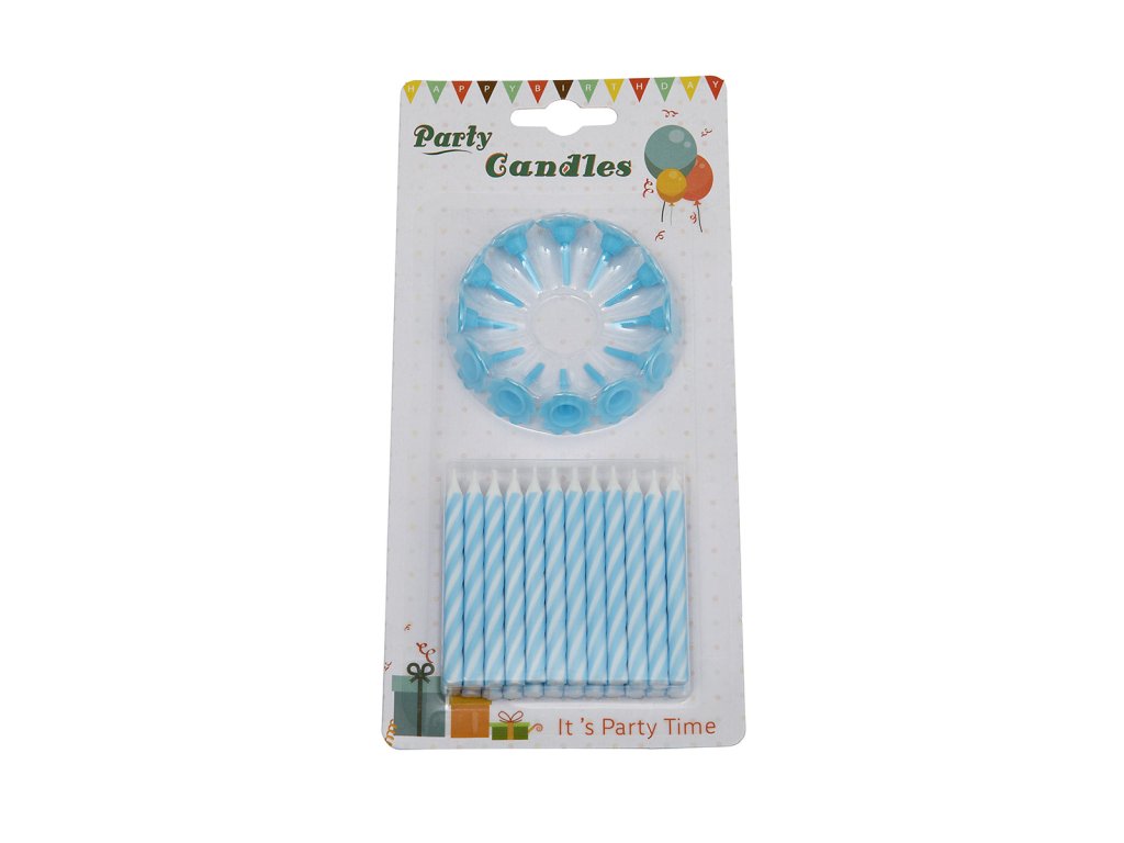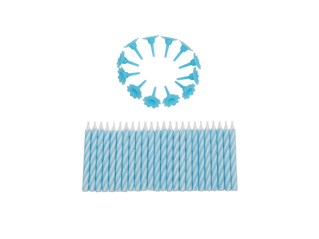 Modré dortové svíčky 24 ks s držáky – spirálový design