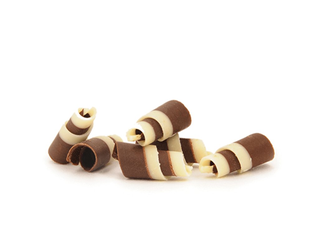 Rolované hobliny - rolky pruhované z mléčné a bílé belgické čokolády.