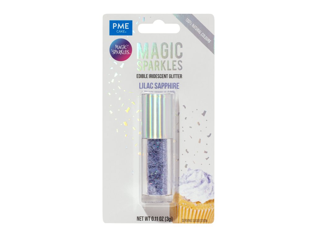 Rozzař své dezerty s kouzelným třpytem PME Magic Sparkles – Lilac Sapphire. Tento jedlý duhový glitter dodá tvým dortům, cupcakům, sušenkám, čokoládám a dalším lahůdkám luxusní prizmatický efekt, který připomíná drahokamové odlesky.