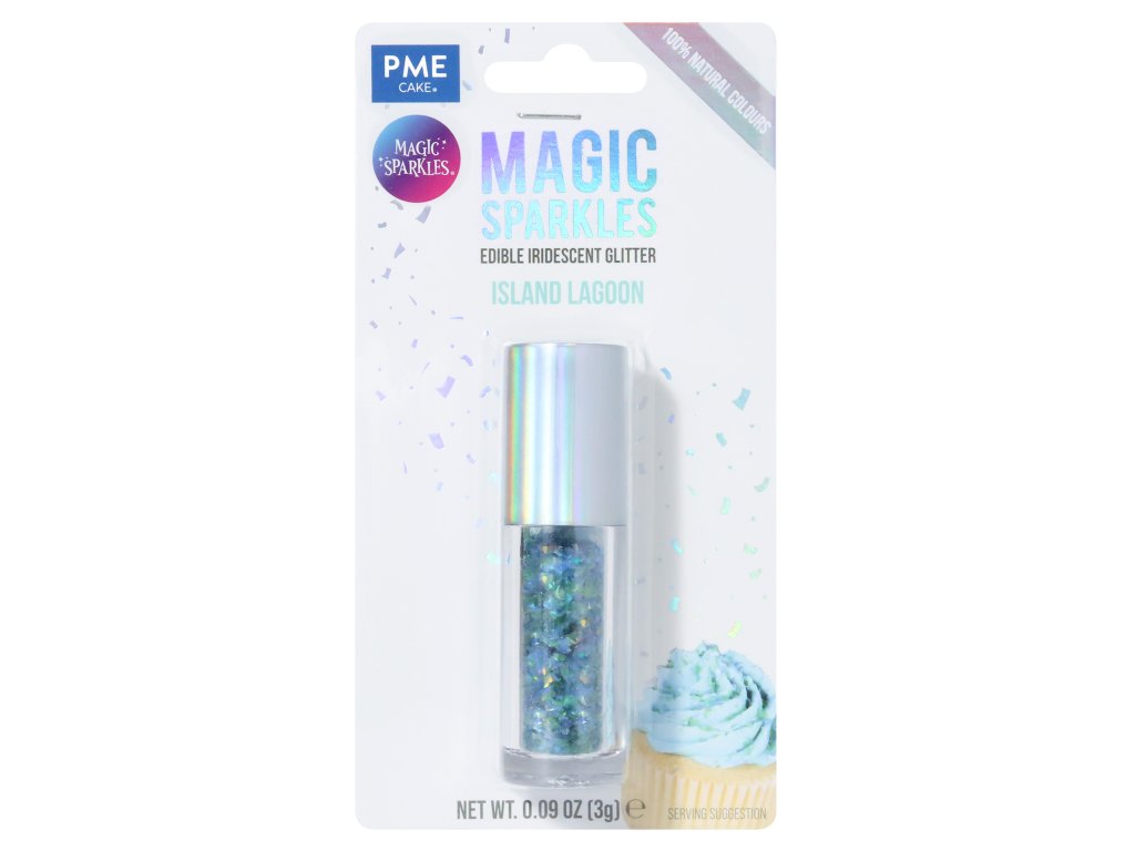 Přeneste se do tropického ráje s třpytem PME Magic Sparkles – Island Lagoon. Tato okouzlující směs duhových odstínů zelené, tyrkysové (Blue Topaz) a smaragdové (Emerald) přinese vašim dezertům svěží letní energii a luxusní lesk.