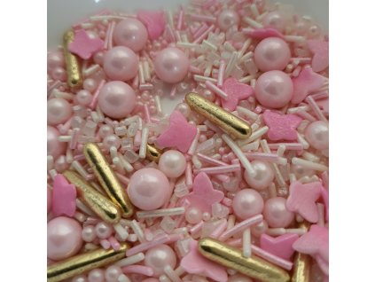 Elegantní luxusní Barbie směs, která dá vašemu pečení dokonalý vzhled. Směs je plná různých druhů a velikostí... Složení: Jedlá glukóza 74%, bílý cukr 18%,...