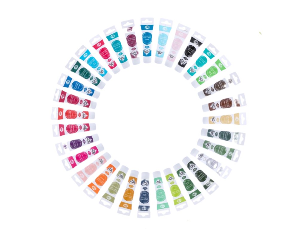 Gel pro barvení potravin ProGel, vyrobený s láskou ve Velké Británii společností Rainbow Dust pomocí speciálně vyvinuté receptury a procesu, poskytuje nepřekonatelné výsledky. Jen malé množství tohoto vysoce koncentrovaného gelu dodá těstům na dorty, máslovým krémům, polevě a fondánové polevě zářivou, hlubokou a poutavou barvu. A s 34 barvami na výběr, z nichž každá může vytvářet více odstínů zvýšením nebo snížením dávky, vám ProGel umožní vyjádřit váš plný tvůrčí potenciál.