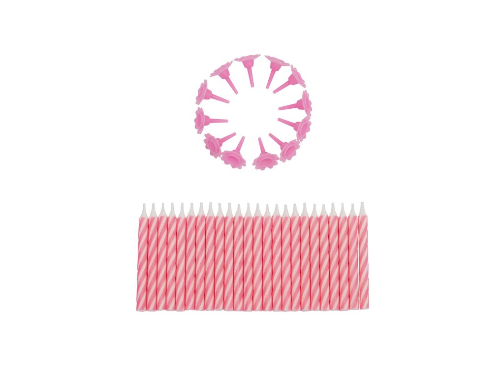 Růžové dortové svíčky 24 ks s držáky – spirálový design