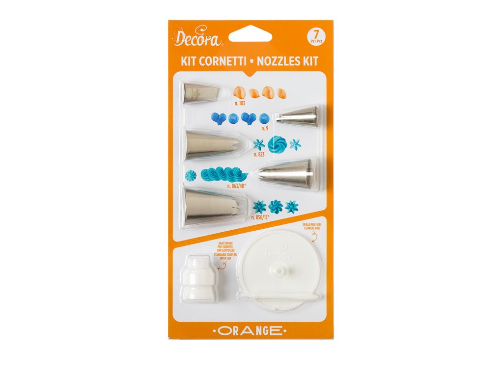 Sada zdobicích, trezírovacích špiček Decora 7ks - s adaptérem a hřebíkem