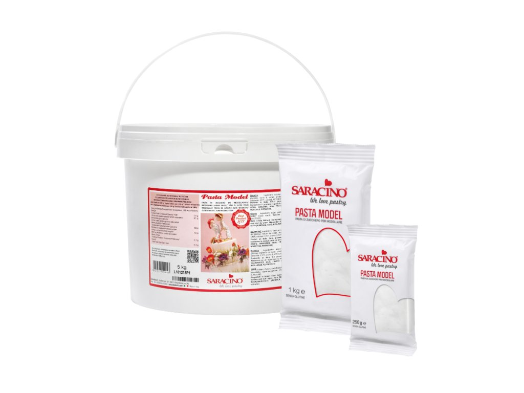 Saracino Modelling Paste – White (bílá) je profesionální modelovací pasta pro tvorbu 3D dekorací, figurek, květin a drobných cukrářských detailů.
