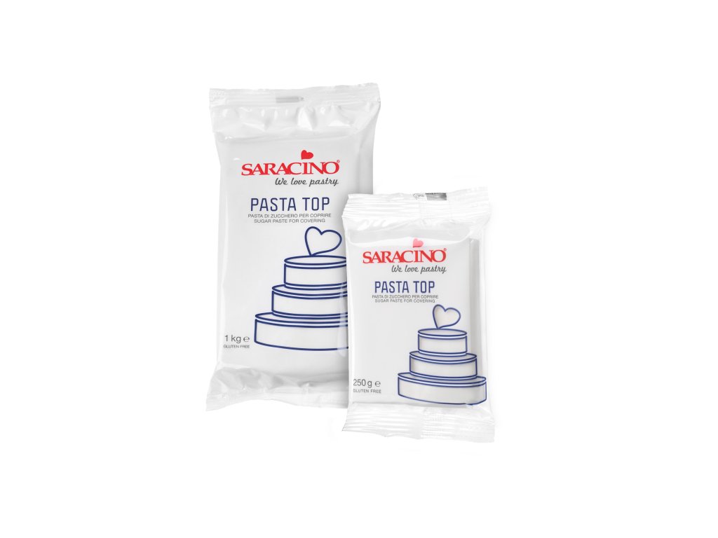 Saracino Pasta Top je prémiová italská potahovací hmota určená pro profesionální cukráře i domácí tvůrce. Díky obsahu kakaového másla je mimořádně elastická, pružná a odolná – při vyválení zůstává hladká, nepraská a nezvlhne ani v prostředí s vyšší vlhkostí.