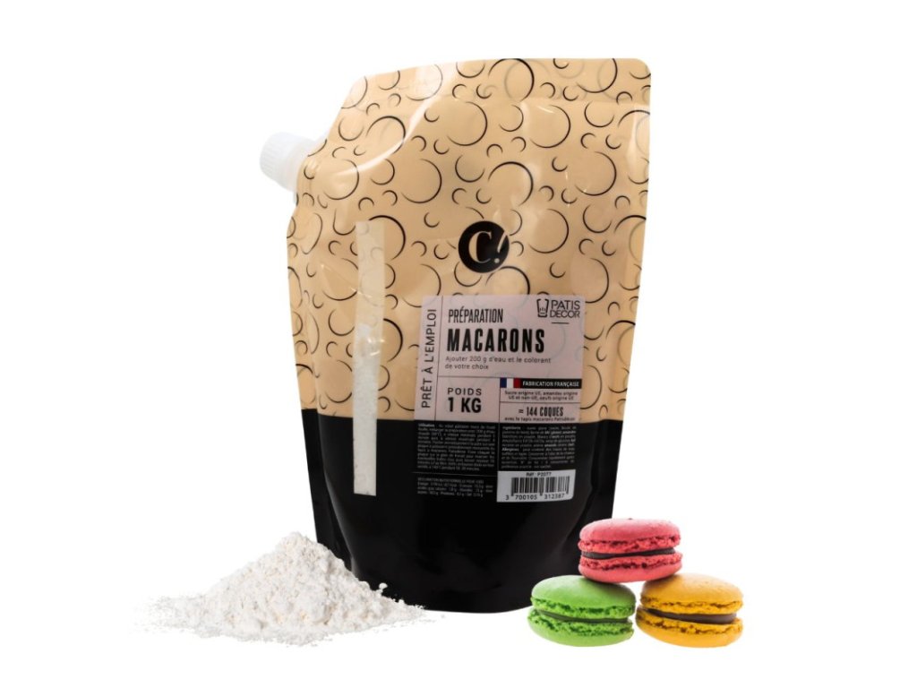 Přípravek na skořápky z macaron Patisdécor je rehydratační přípravek, který umožňuje vyrobit přibližně 144 skořápek. Chcete-li je získat, jednoduše přidejte vodu: je to produkt šetřící čas. Pro větší kreativitu můžete přidat barvivo dle vlastního výběru, přičemž dbejte na dodržování dávkování.