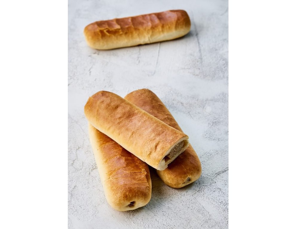 Postup: Těsto hněťte 12 minut, poté rozdělte na 40g kuličky a nechte 15 min odpočívat. Vyválejte placičky, zabalte do nich válečky masa, potřete rozšlehaným vejcem a nechte na plechu hodinu kynout.
