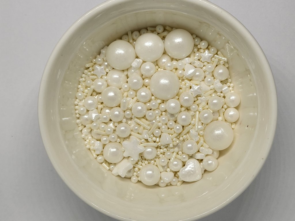 Bohatá textura: Směs obsahuje perly několika velikostí, tyčinky, hvězdičky a srdíčka, které spolu vytvářejí dokonalý vizuální celek.