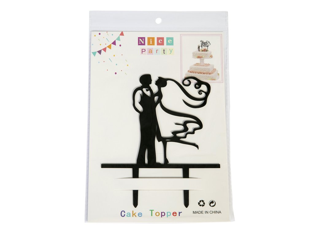 Svatební zápich do dortu Nevěsta a ženich černý | 16x13 cm