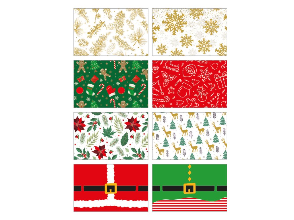 Krabičky mají krásné vánoční motivy – celkem 8 různých textur, takže každý dárek může mít jiný vzhled. Jsou pevné, potravinářsky nezávadné a díky samoskládací konstrukci je složíš během pár sekund. Ideální na:
