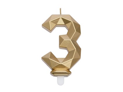 Svíčka Digit Candle Geo Gold #3Pokud je dítěti pět let nebo jakýkoli jiný věk s číslem pět, pak je tato číselná svíčka ideální k použití. Svíčka vytváří zábavný efekt díky...