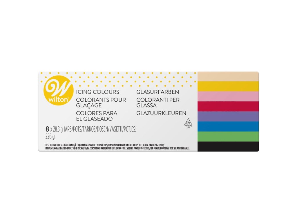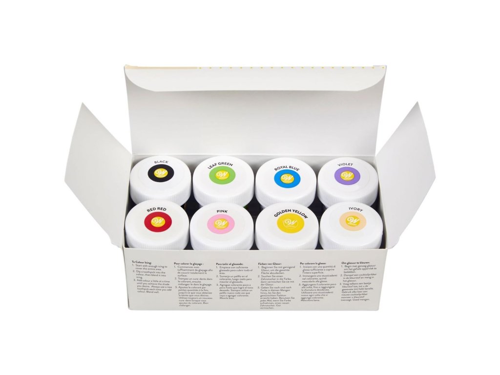 Tahle ikonická sada Wilton je jako malá paletka cukráře-umělce – stačí špejlička, trocha fantazie a každý krém, fondán i těsto dostane úplně nový život. Barvy jsou intenzivní, nádherně drží a díky gelové konzistenci se nerozlévají ani neředí hmoty.