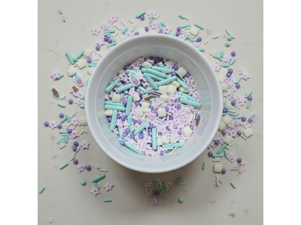 Osvěžte své pečení s naší nejhravější směsí od Lucie’s Sprinkles! Tato unikátní kombinace přináší revoluci ve zdobení – tradiční jedlé cukrové zdobení jsme doplnili o originální motivy z jedlého rýžového papíru. Výsledek? Dezerty, které vypadají jako z té nejlepší zmrzlinárny v Itálii.